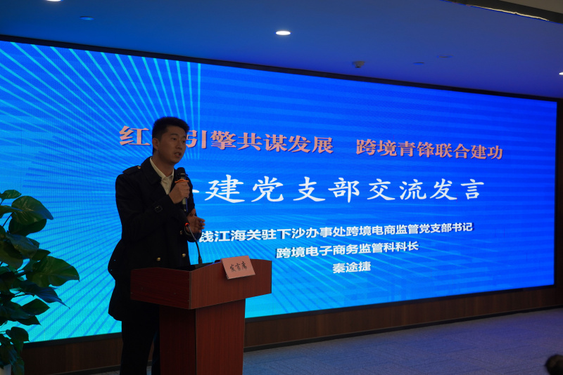 在“红色引擎·共谋发展”环节,来自钱江海关驻下沙办跨境电商监管党支部与xk星空体育直播第一党支部相关负责人结合各自实操领域分享创新实践与未来畅想。海关党支部负责人用“达人”“攻坚”“创新”三个标签分享了党支部的先锋实践,云商党支部负责人则在现场提出倡议,下一步双方就打造“AI+海关”、开辟“绿色通道”、共育“跨境人才”等方面开展合力探索。
